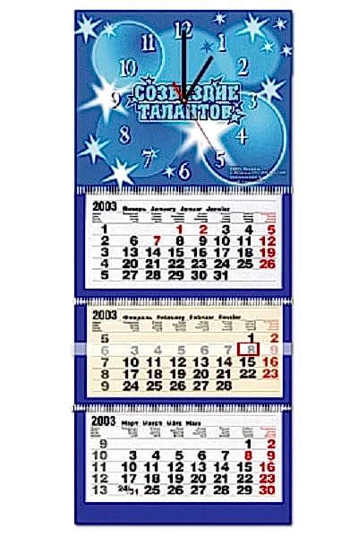 Наличие часового механизма на "шапке" Pin-Up увеличивает его "значимость". Такой календарь однозначно будет на видном месте и "работать" даже после окончания службы календаря. Как показала практика многие и дальше используют его как часы.